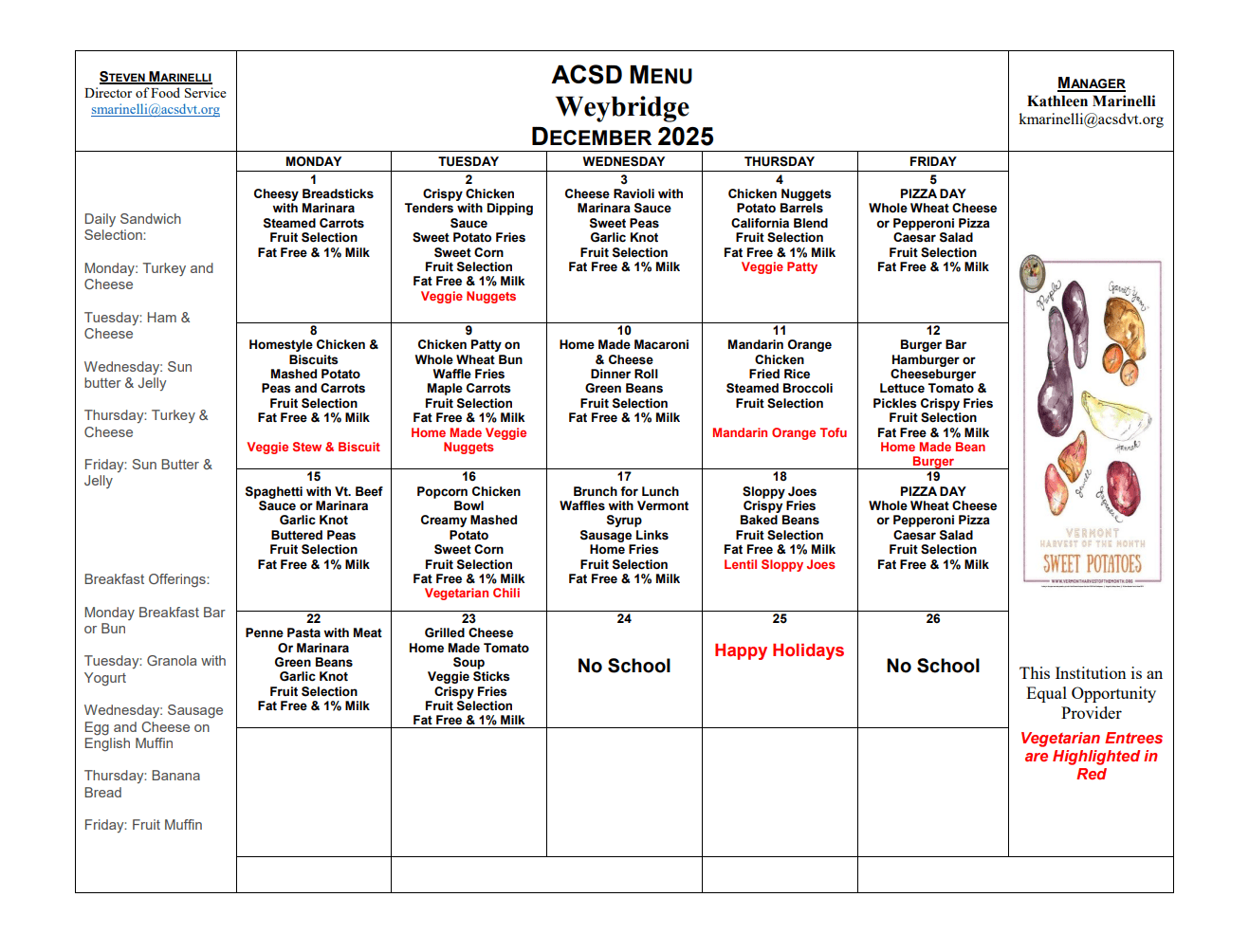 Following our updated ordering procedures students will now order breakfast for the following school day, as well as lunch for the current school day once they have settled into class for the morning. Please find our monthly lunch menu, here, to review options with your student.